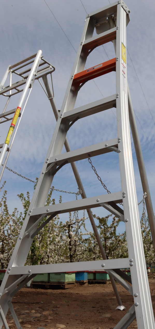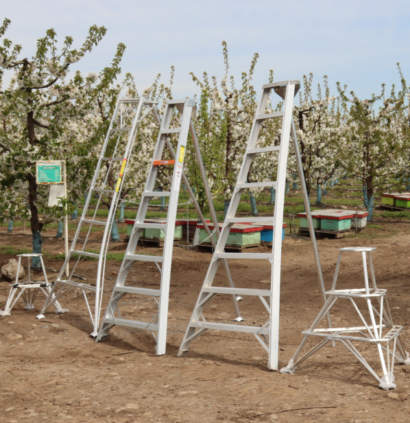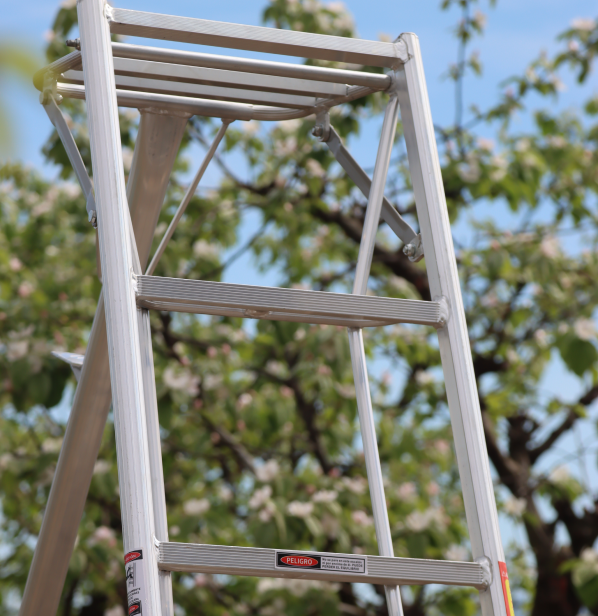 Todas las medidas de escaleras agrícolas se destacan por su estructura de aluminio de 2 mm de espesor, lo que facilita el transporte y la colocación en distintos puntos del huerto, sin sacrificar la resistencia. Con una capacidad de carga de hasta 150 kg y sus peldaños antideslizantes ofrecen mayor seguridad al usuario. Es una escalera con una excelente relación precio-calidad.